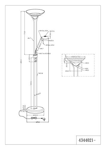 Trio 4344021-24 Lampada Alogena da Pavimento 300 W, con Lampada da Lettura 40 W, Ruggine, vetro
