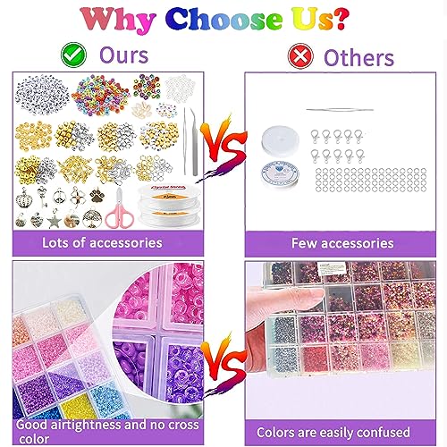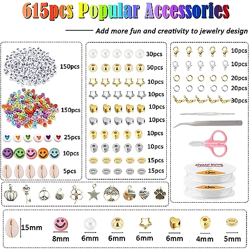 44295pcs 56 Colori 2mm Perline per Braccialetti, Perline per Bigiotteria Fai Da Te, Perline per Collane,Set Perline per Gioielli Dai Da Te con 615 Accessori Perline Lettere Cordino