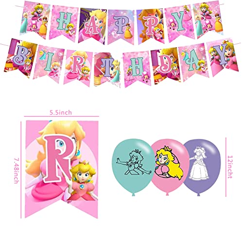 44PCS Peach Princess Party Decorations Set,Peach Princess Decorazioni per Feste di Compleanno, Birthday Cake Topper e Birthday Banner Palloncini