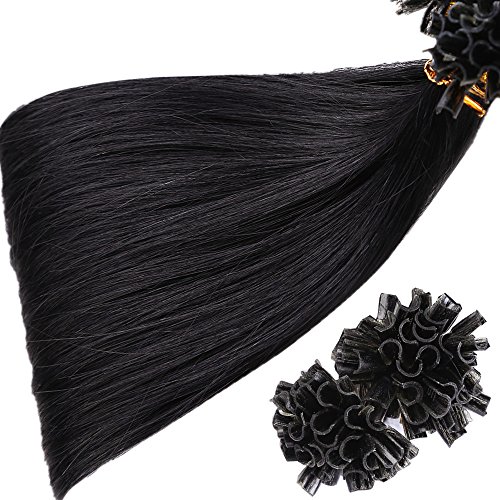 45-55cm Hair Extension Cheratina Capelli Veri Naturali 100% Remy Human Hair Pre Bonded U-tip Keratina Allungamento, 100 Ciocche - 55cm-50g, 1B# Nero Naturale