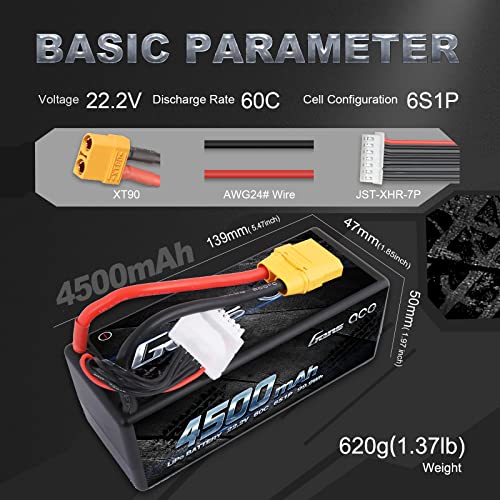 Gens ace 6S lipo 4500mAh 22.2V 6S1P 60C Batteria Lipo serie HardCase per con connessione XT90, per la maggior parte delle auto RC in scala 1/8,1/10