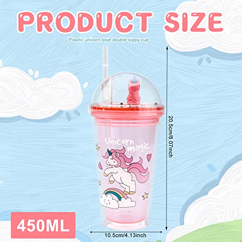 450ml Bicchiere d'acqua con Cannuccia e Coperchio Bicchiere di Plastica Doppia Parete Unicorno Riutilizzabile Bicchiere per Frullato Bottiglia per Bevande a Tenuta per Succhi Frutta Caffè (Rosa)