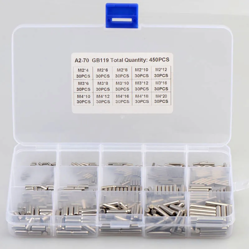 450pcs/set M2 M3 M4 304 Stainless Steel DIN6325 Cylindrical Pin Locating Dowel Combination Set Solid Cylinder Pin Fastener Kit