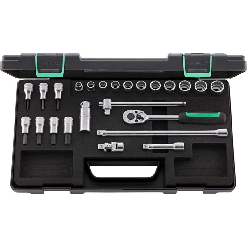 Set di tasti STC da 3/8 Vierkant in robusto. Box in plastica ABS impilabile.24 Parti: 11 Inserti del tasto Socket con inserto per doppia sistemazione n. 45: SW • 1 • 1 • 1 • 1 • 1 • 19 mm111 Inserisci chiave STC con doppio -ocket. Lang. Con inserto in gomma.nr. 4600: SW 16 mm - 5/8 7 INSERTI INSEX No. 49: SW • • • • 10 mm1 Knarre n. 4352 ESTENSIONE N. 427/3 (76 (76 mm). N. 427/10 (240 mm) 1 manico trasversale n. 4251 KardelangeLelenk n. 428