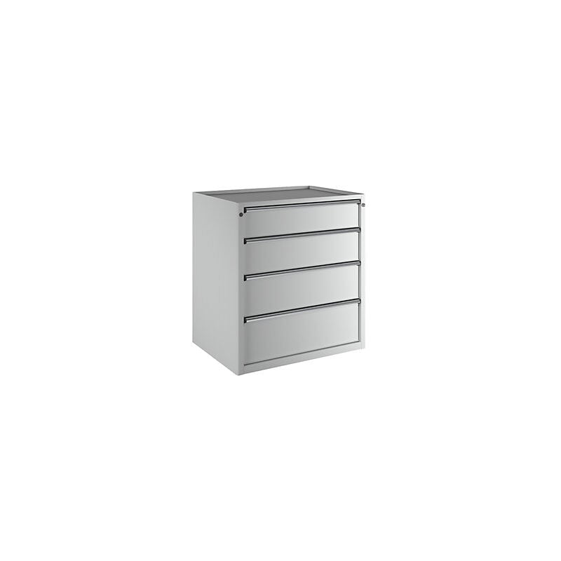 Cassettiera, largh. x prof. 910 x 675 mm, portata cassetti 200 kg, 4 cassetti, altezza 980 mm, frontalino grigio chiaro. Fornitura = montato. Altezza = 980 mm. Larghezza = 910 mm. Profondità = 675 mm. Portata per cassetto = 200 kg. Numero cassetti = 4 pz. Altezza cassetti = 1x180, 1x210, 1x240, 1x270 mm. Estrazione cassetti = 100%. Colore corpo = grigio chiaro RAL 7035. Colore frontalino = grigio chiaro RAL 7035. Dotazione = sicure antiribaltamento. Materiale = lamiera d'acciaio, verniciata a polvere. Versione cassetti = guida a rulli. Serratura = chiusura centralizzata a cilindro. Dimensioni interne cassetti = 750x600 mm. Caratteristiche = possibilità di applicare targhette. Portata cassetti 200 kg. Estraibili al 100%, massimo sfruttamento dello spazio. Sicurezza antiribaltamento garantita da un fermo di bloccaggio singolo. Chiusura centralizzata: serratura a cilindro con nucleo sostituibile o serratura elettronica. Robusta struttura in lamiera d'acciaio verniciata a polvere. Corpo