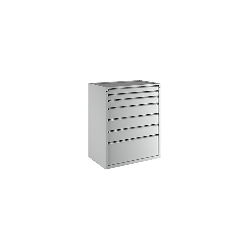 Cassettiera, largh. x prof. 1060 x 675 mm, portata cassetti 200 kg, 7 cassetti, altezza 1280 mm, frontalino grigio chiaro. Fornitura = montato. Altezza = 1280 mm. Larghezza = 1060 mm. Profondità = 675 mm. Portata per cassetto = 200 kg. Numero cassetti = 7 pz. Altezza cassetti = 2x90, 1x120, 3x180, 1x360 mm. Estrazione cassetti = 100%. Colore corpo = grigio chiaro RAL 7035. Colore frontalino = grigio chiaro RAL 7035. Dotazione = sicure antiribaltamento. Materiale = lamiera d'acciaio, verniciata a polvere. Versione cassetti = guida a rulli. Serratura = chiusura centralizzata a cilindro. Dimensioni interne cassetti = 900x600 mm. Caratteristiche = possibilità di applicare targhette. Portata cassetti 200 kg. Estraibili al 100%, massimo sfruttamento dello spazio. Sicurezza antiribaltamento garantita da un fermo di bloccaggio singolo. Chiusura centralizzata: serratura a cilindro con nucleo sostituibile o serratura elettronica. Robusta struttura in lamiera d'acciaio verniciata a polvere. Corpo