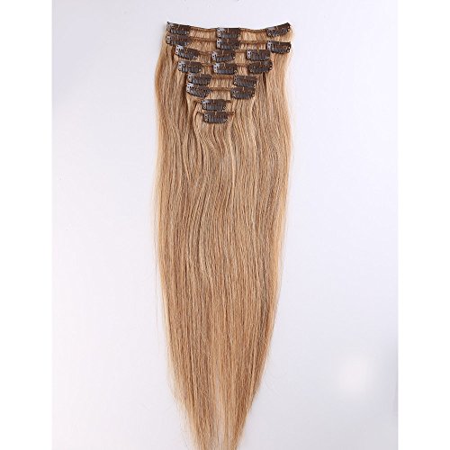 45cm-55cm Extension Capelli Veri Clip 8 Ciocche 18 Fermagli Remy Human Hair (55cm-75g, 27# Biondo Scuro)