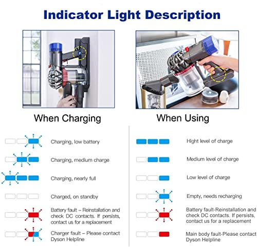 【Replacement Battery V8 Absolute】Replacement battery for Dyson V8 battery: lithium-ion, voltage 21.6V, capacity 4600mAh. No memory effect, can be charged or discharged as needed without losing capacity.