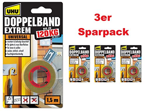 Uhu 46820 doppio nastro resistente fino a 120 kg, 1,5 m x 19 mm 1.5m x 19mm EXTREM
