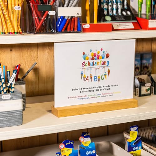 Raffinato - Base in legno rimovibile per il cambio rapido dei foglietti illustrativi e delle schede di menu in formato DIN A4 orizzontale
