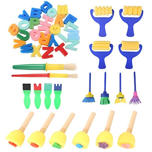 46pcs spugna pittura timbro altri materiali d'arte lettere maiuscole strumento di pittura educativa con spazzole a rulli per i bambini
