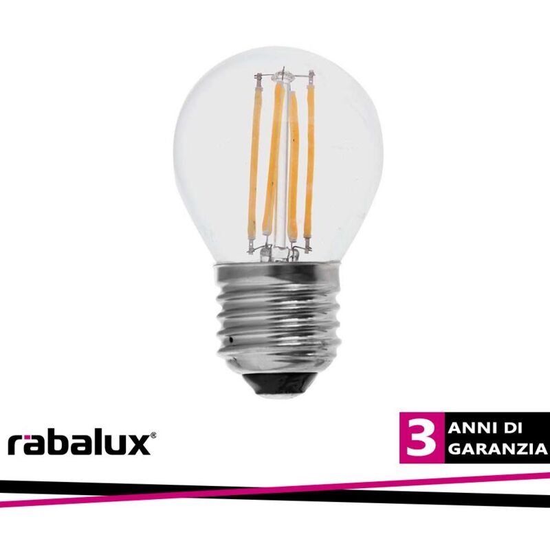 Lampadina E27 Filamento CARATTERISTICHE DEL PRODOTTO:Categoria di prodotto=Lampadina:Temperatura del colore=bianco caldo:Flusso luminoso della sorgente luminosa (lm)=470:Specifiche della sorgente luminosa=4:Tecnologia LED=S:Protezione IP=IP20:Colore della lampada=trasparente:Materiale della lampada=Vetro:Materiale del paralume=Vetro:Durata della sorgente luminosa (h)=20000:Classe energetica della sorgente luminosa=E:Garanzia (anni)=3:Angolo di illuminazione=300:Consumo energetico ponderato (kwh/1000 Ah)=4.0:PRESA=E27:Tensione applicata=230 V, 50 Hz:Verticale (mm)=72.0:Diametro=45.0:Misura unica della scatola X (cm)=4.5:Misura unica della scatola Y (cm)=7.5:Misura unica della scatola Z (cm)=4.5:Peso netto (kg)=0,015:Peso lordo=0,024:Temperatura del colore (K)=2700:La forma della sorgente luminosa=G45:Raggio d'azione ideale=-20°C 40°