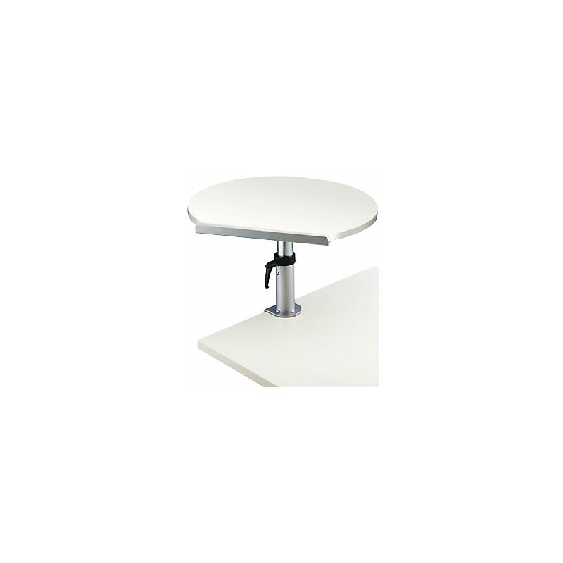 Supporto da tavolo, ergonomico, largh. x prof. 600 x 520 mm, altezza regolabile, bianco. Fornitura = montato. Larghezza = 600 mm. Profondità = 520 mm. Campo di regolazione altezza = 310 - 425 mm. Materiale telaio = acciaio. Colore telaio = argento. Materiale del ripiano = verniciata in resina melamminica. Colore del ripiano = bianco. Portata = 30 kg. Peso = 8.15 kg. Tipo di prodotto = supporti da tavolo. Per un lavoro d'ufficio dinamico: lavorare da seduti e in piedi. Evita una postura da lavoro fissa, migliora l'efficienza lavorativa e riduce il carico sulla spina dorsale. Ideale come completamento di scrivanie o come piani salvaspazio per lavorare in piedi. Piano regolabile in continuo da ca. 310 - 425 mm (dal piano del tavolo). Piano inclinabile in avanti di 10°. Piano ruotabile in continuo di 360°, con dispositivo per il fissaggio. Dimensioni piano 600 x 520 mm, arrotondato. Mensolina per penne ecc., con bordo anticaduta, evita il rotolamento degli utensili. Colonna telescopica in