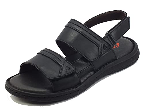 Zen 478719 Nero Sandali per Uomo in Pelle con Tripla Chiusura a Strappo (Taglia 44)