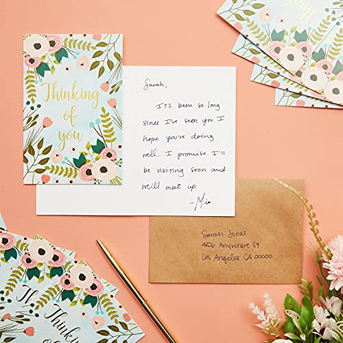 48-pack Thinking of you note Cards - Confezione bulk set - bianco all' interno - Design fiore design con stampa oro - include 48 biglietti di auguri e buste 48 - 10,2 x 15,2 cm