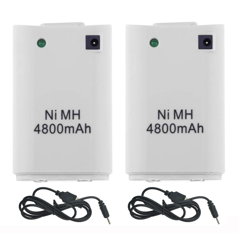 2Pcs x 4800mAh Battery Pack + 2 x Charger Cable for Xbox 360 Controller Battery Pack Xbox 360 Gamepads Replacement Bateria