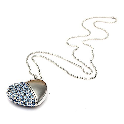 4/8/16/GB USB Flash Drive USB memory stick ciondolo collana - Jeweled metal Heart - ideale regalo di Natale blu blue 16 Gb