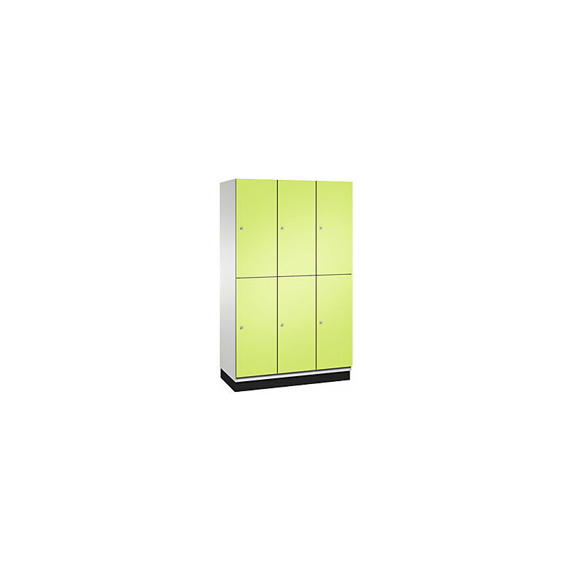 Armadio a scomparti CAMBIO con asta appendiabiti, 6 scomparti, corpo grigio chiaro / anta verdino, larghezza 1200 mm. Fornitura = montato. Altezza = 1950 mm. Profondità = 525 mm. Larghezza = 1200 mm. Colore corpo = grigio chiaro RAL 7035. Colore porta = verde azzurrognolo RDS 1108060. Serratura = serratura a cilindro differenziata. Numero scomparti in larghezza = 3 pz. Numero scomparti = 6 pz. Larghezza scomparti = 400 mm. Materiale = lamiera d'acciaio. Altezza armadietto = 1950 mm. Dotazione interna = 1 asta appendiabiti, 4 ganci scorrevoli. Larghezza interna = 362 mm. Altezza interna = 862 mm. Profondità interna = 480 mm. Tipo di porta = anta a battente in acciaio. Numero chiavi = 2 pz. Altezza scomparti = 925 mm. Larghezza ripiani = 400 mm. Profondità ripiani = 525 mm. Altezza zoccolo = 100 mm. Struttura = con saldatura. Superficie = verniciatura. Struttura in acciaio di lunga durata con ante a battente. Cerniere in acciaio inox. Finecorsa di apertura a 90°. Corpo in materiale