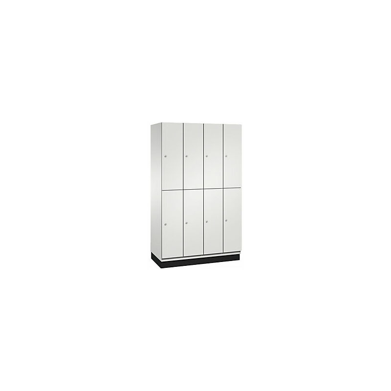 Armadio a scomparti CAMBIO con asta appendiabiti, 8 scomparti, corpo grigio chiaro / anta grigio chiaro. Fornitura = montato. Altezza = 1950 mm. Profondità = 525 mm. Larghezza = 1200 mm. Colore corpo = grigio chiaro RAL 7035. Colore porta = grigio chiaro RAL 7035. Serratura = serratura a cilindro differenziata. Numero scomparti in larghezza = 4 pz. Numero scomparti = 8 pz. Larghezza scomparti = 300 mm. Materiale = lamiera d'acciaio. Altezza armadietto = 1950 mm. Dotazione interna = 1 asta appendiabiti, 4 ganci scorrevoli. Larghezza interna = 262 mm. Altezza interna = 862 mm. Profondità interna = 480 mm. Tipo di porta = anta a battente in acciaio. Numero chiavi = 2 pz. Altezza scomparti = 925 mm. Larghezza ripiani = 300 mm. Profondità ripiani = 525 mm. Altezza zoccolo = 100 mm. Struttura = con saldatura. Superficie = verniciatura. Struttura in acciaio di lunga durata con ante a battente. Cerniere in acciaio inox. Finecorsa di apertura a 90°. Corpo in materiale zincato. Robusta asta