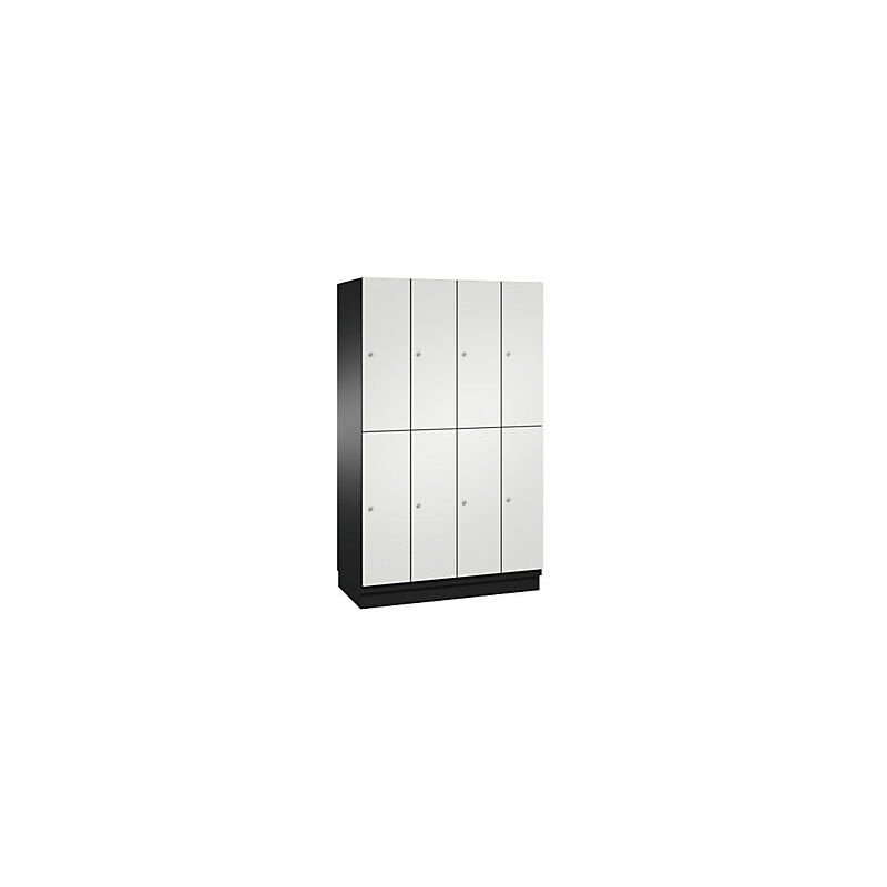 Armadio a scomparti CAMBIO con asta appendiabiti, 8 scomparti, corpo grigio nerastro / anta grigio chiaro. Fornitura = montato. Altezza = 1950 mm. Profondità = 525 mm. Larghezza = 1200 mm. Colore corpo = grigio nerastro RAL 7021. Colore porta = grigio chiaro RAL 7035. Serratura = serratura a cilindro differenziata. Numero scomparti in larghezza = 4 pz. Numero scomparti = 8 pz. Larghezza scomparti = 300 mm. Materiale = lamiera d'acciaio. Altezza armadietto = 1950 mm. Dotazione interna = 1 asta appendiabiti, 4 ganci scorrevoli. Larghezza interna = 262 mm. Altezza interna = 862 mm. Profondità interna = 480 mm. Tipo di porta = anta a battente in acciaio. Numero chiavi = 2 pz. Altezza scomparti = 925 mm. Larghezza ripiani = 300 mm. Profondità ripiani = 525 mm. Altezza zoccolo = 100 mm. Struttura = con saldatura. Superficie = verniciatura. Struttura in acciaio di lunga durata con ante a battente. Cerniere in acciaio inox. Finecorsa di apertura a 90°. Corpo in materiale zincato. Robusta asta