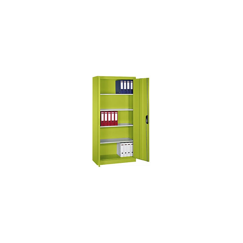 Armadio universale ACURADO, largh. x prof. 930 x 400 mm, verdino / verdino. Fornitura = montato. Larghezza = 930 mm. Altezza = 1950 mm. Profondità = 400 mm. Colore corpo = verde azzurrognolo RDS 1108060. Materiale = acciaio, con verniciatura a forno. Tipo di prodotto = armadi con ante a battente. Tipo di porta = anta a battente. Colore porta = verde azzurrognolo RDS 1108060. Numero ante = 2 pz. Numero ripiani = 4 pz. Materiale ripiani = lamiera d'acciaio. Colore ripiani = grigio chiaro RAL 7035. Portata per ripiano = 70 kg. Caratteristiche = con serratura. Serratura = Ergo-Lock, serratura a cilindro, con triplo chiavistello. Numero file raccoglitori = 5 pz. Dotazione interna = 4 ripiani. Passo di regolazione altezza ripiani = 15 mm. Altezza zoccolo = 100 mm. Angolo di apertura delle porte = 110 °. Spessore ripiani = 24 mm. Spessore del corpo = 0.88 mm. Spessore porta = 25 mm. Spessore parete posteriore = 0.75 mm. Robusta struttura in acciaio di lunga durata, corpo verniciato a fuoco.