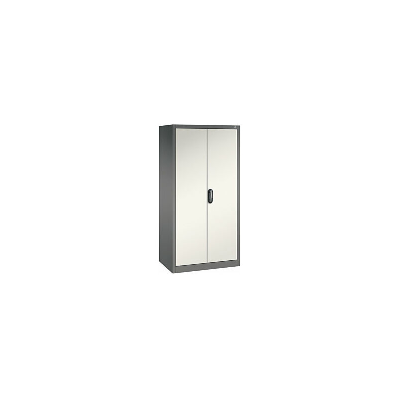 Armadio universale ACURADO, largh. x prof. 930 x 600 mm, grigio vulcano / bianco perla. Fornitura = montato. Larghezza = 930 mm. Altezza = 1950 mm. Profondità = 600 mm. Colore corpo = grigio vulcano RDS 0005000. Materiale = acciaio, con verniciatura a forno. Tipo di prodotto = armadi con ante a battente. Tipo di porta = anta a battente. Colore porta = bianco perla RAL 1013. Numero ante = 2 pz. Numero ripiani = 4 pz. Materiale ripiani = lamiera d'acciaio. Colore ripiani = grigio chiaro RAL 7035. Portata per ripiano = 70 kg. Caratteristiche = con serratura. Serratura = Ergo-Lock, serratura a cilindro, con triplo chiavistello. Numero file raccoglitori = 5 pz. Dotazione interna = 4 ripiani. Passo di regolazione altezza ripiani = 15 mm. Altezza zoccolo = 100 mm. Angolo di apertura delle porte = 110 °. Spessore ripiani = 24 mm. Spessore del corpo = 0.88 mm. Spessore porta = 25 mm. Spessore parete posteriore = 0.75 mm. Robusta struttura in acciaio di lunga durata, corpo verniciato a fuoco.
