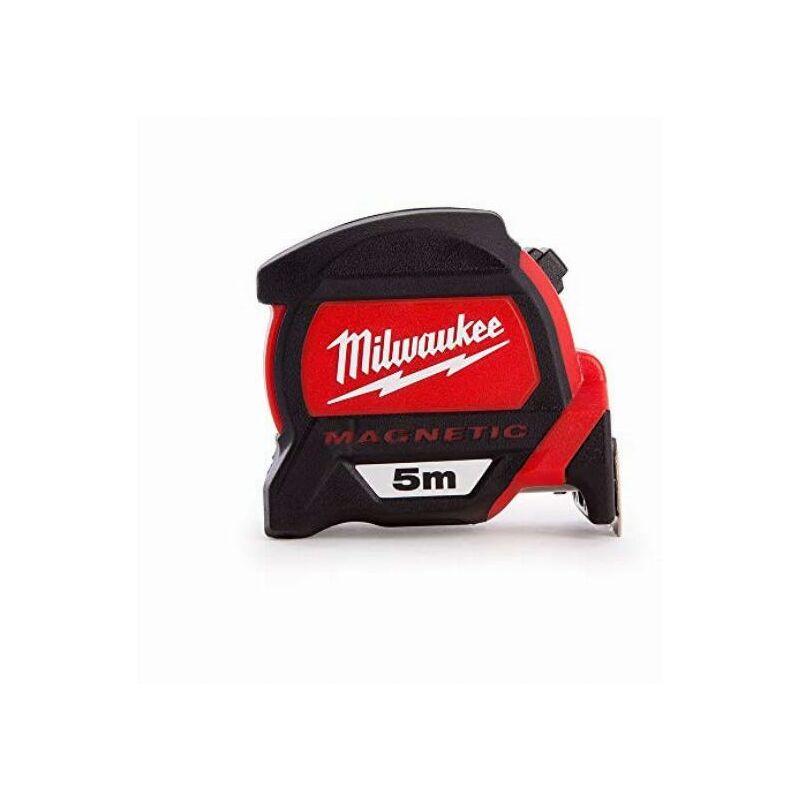 Milwaukee Handtools Premium - Metro a nastro magnetico. Ha una lama in nylon. Prodotto tramite esclusivo processo di estrusione industriale, che applica al nylon un'eccezionale resistenza alle abrasioni, alla polvere, allo sporco, ai residui e all'acqua. Il rivestimento antiriflesso della lama rende il nastro più facile da leggere sotto la luce del sole. Sul retro c'è una scala stampata blu che converte i disegni da 1/4” e 1/8”. Dotato di una forte punta magnetica e gancio ottimizzato. La custodia in plastica Pc/ABS vergine offre un'eccellente resistenza agli urti rispetto all'ABS e ad altri materiali in plastica riciclata. Telaio rinforzato in 5 punti, progettato, testato e ottimizzato sin dal principio per la massima resistenza alle cadute. Un fermo per dita brevettato offre una presa comoda e una protezione per le dita quando la lama si ritrae. Clip per cintura in filo metallico, facile da riporre, si aggancia facilmente senza sfilacciarsi e strappare i vestiti. Specifiche