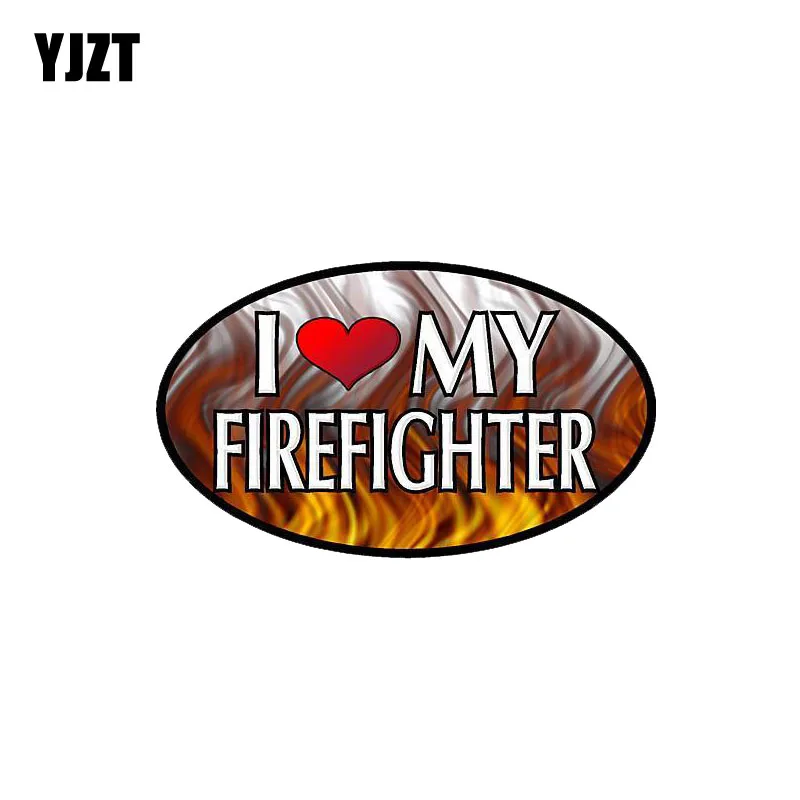 YJZT 12.4CM*7.2CM Funny I LOVE MY FIREFIGHTER Car Sticker Decal PVC 12-0688
