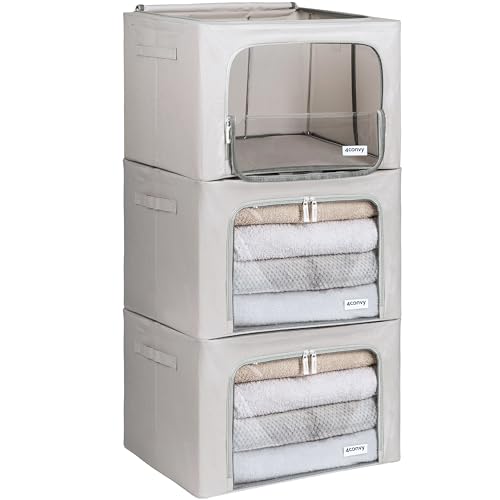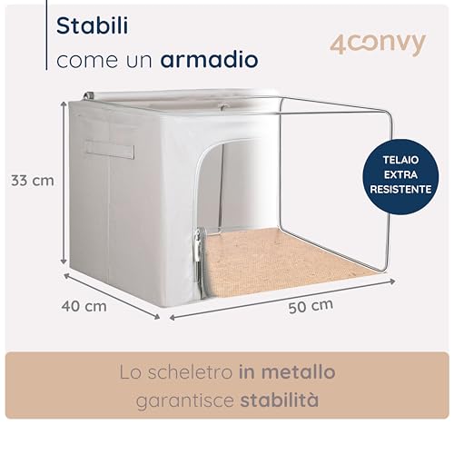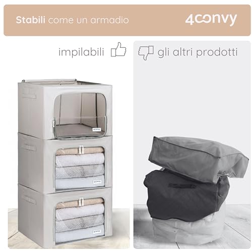 4CONVY Scatole per Armadio Rigide con Cerniera - [2024 MATERIALE AGGIORNATO] Contenitori per Armadio per Vestiti, Trapunte - Organizzatore Armadio con Struttura in Metallo Pieghevole - 3x66L