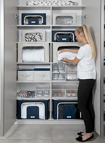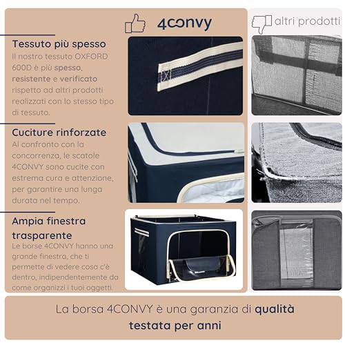4CONVY Scatole per Armadio Rigide con Cerniera - [2024 MATERIALE AGGIORNATO] Contenitori per Armadio per Vestiti, Trapunte - Organizzatore Armadio con Struttura in Metallo Pieghevole - 2x66L