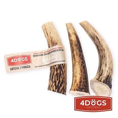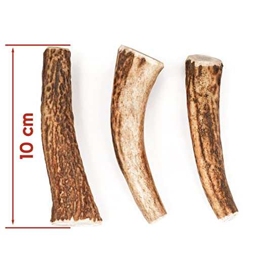 4DOGS ORIGINAL Il corno di cervo mastica | Set di 3 | 86 g | snack per corna naturali per cani | 2x Antler intero & 1x diviso | Spuntino a basso contenuto di grassi
