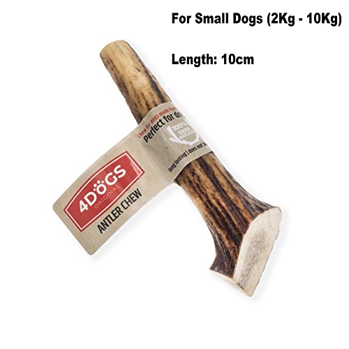 4DOGS ORIGINAL Cane Mastica Corna di Cervo Naturali di Lunga Durata | Giocattoli da masticare per cani | 10 cm di lunghezza | Corna per cani - Ideale per cani di piccola taglia (2Kg - 10Kg)
