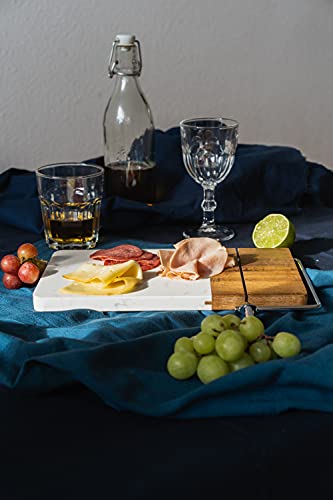 4evergreen Tagliere con filo per affettare il formaggio, fatto di legno di acacia, marmo e acciaio inox - Tagliere per formaggio, affettatrice per formaggio, burro