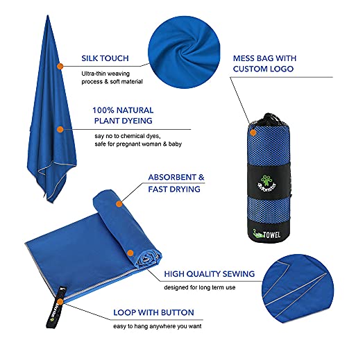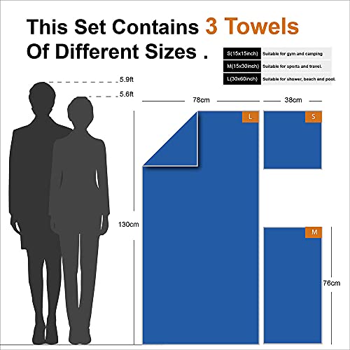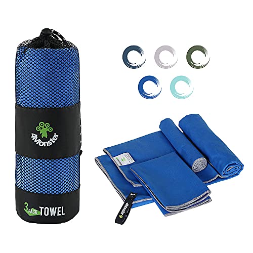 4Monster Asciugamani da palestra in microfibra di 3 dimensioni, ad asciugatura rapida, ultra leggeri, super assorbenti, da spiaggia, campeggio, palestra, spiaggia, nuoto, escursionismo (blu puro)