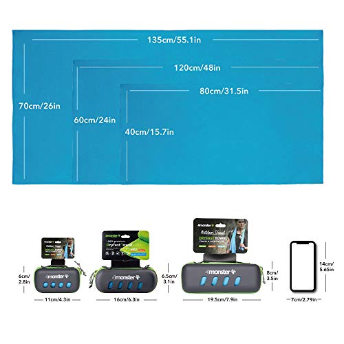 4Monster Asciugamano in microfibra con custodia per il trasporto, asciugamano da viaggio super assorbente, asciugamano ad asciugatura rapida, ideale per palestra, nuoto, zaino in spalla e molto altro