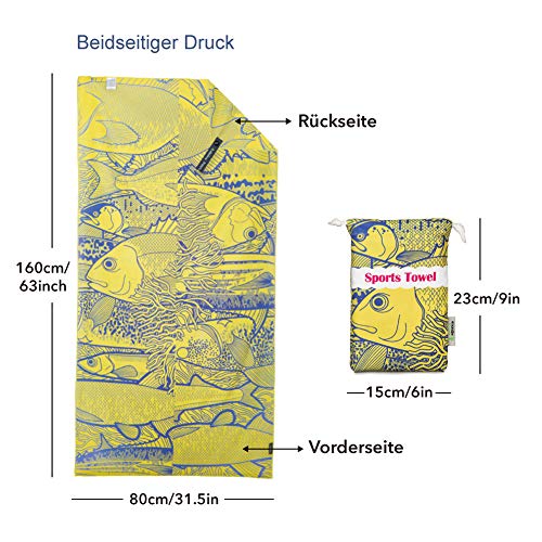 Molto assorbente e ad asciugatura rapida: realizzato in 80% poliestere e 20% poliammide. Questo asciugamano può essere utilizzato anche come asciugamano da bagno, asciugamano da nuoto e asciugamano da viaggio, perché può assorbire rapidamente l'umidità e asciugare in breve tempo. Riutilizzabile senza tempi di attesa.