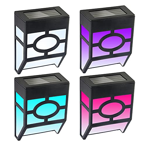 4Pack Luci di Recinzione Solari Bianco Freddo Luci di Parete, Applique Solare da Esterno Led illuminazione Paret di Recinzione Solare, Lampade da Parete Solare Esterni per Gradini & Scale & Ringhiera