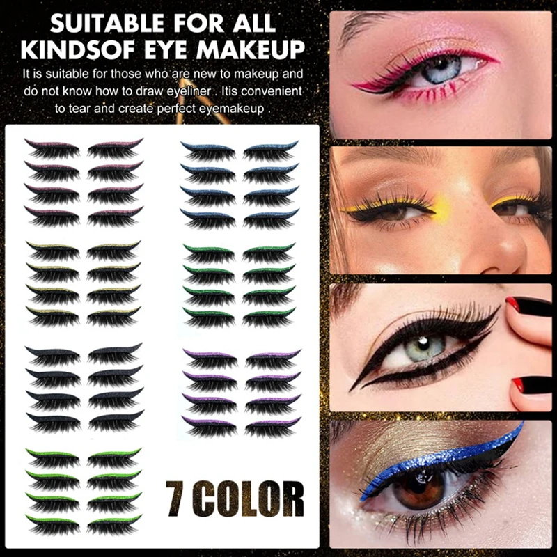 4pairs Eyeliner And Eyelash Stickers Reusable Waterproof Self-Adhesive Eyeliner Stickers Glitter Shiny Eyeliner Stickers 7 Color