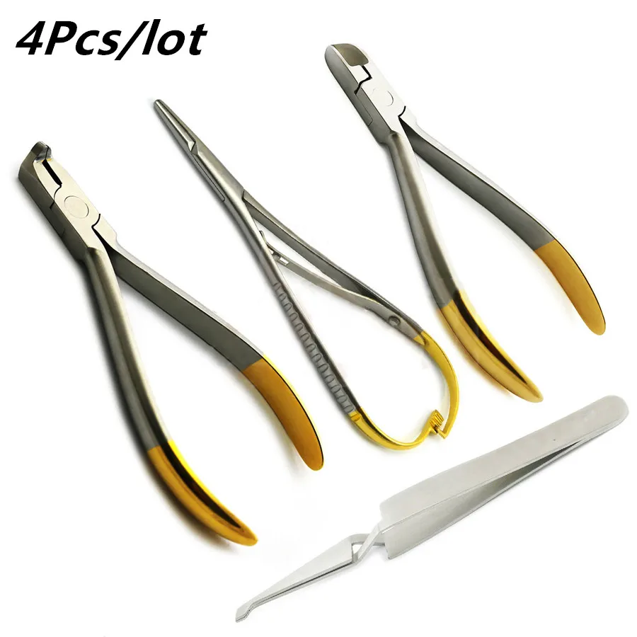 4Pcs/lot Orthodontic Distal TC Hard Wire Cutter Mathieu Needle Holder TC Bracket Tweezers