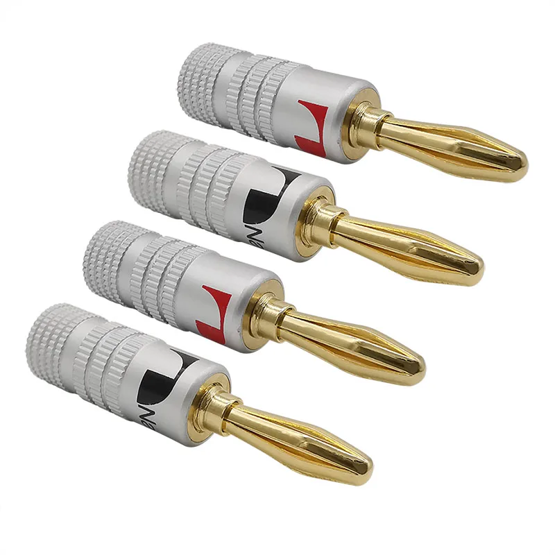 4Pcs/lot Gold Plate 4mm Banana Plugs Audio Jack Connector Banana Screw Lock Speaker Plug Connectors for Speaker Wire Audio Video