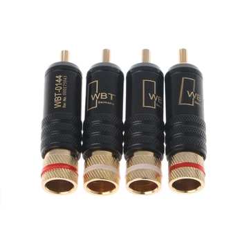 4pcs/Lot New Gold Plated Copper RCA Plug Durable RCA Connector Screws Soldering Locking Audio Video WBT Plug 58mm*13mm G25
