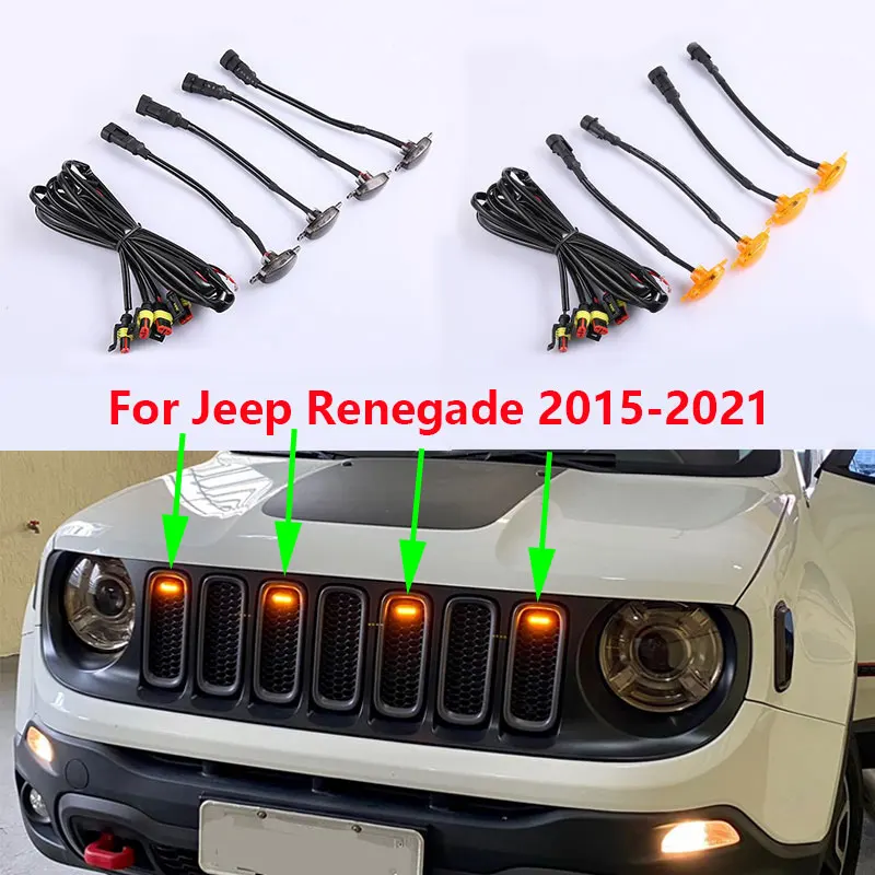4Pcs/Set For Jeep Renegade 2015 2016 2017 2018 2019 2020 2021 LED Car Front Grille Amber Light Raptor Style Lamp Kit