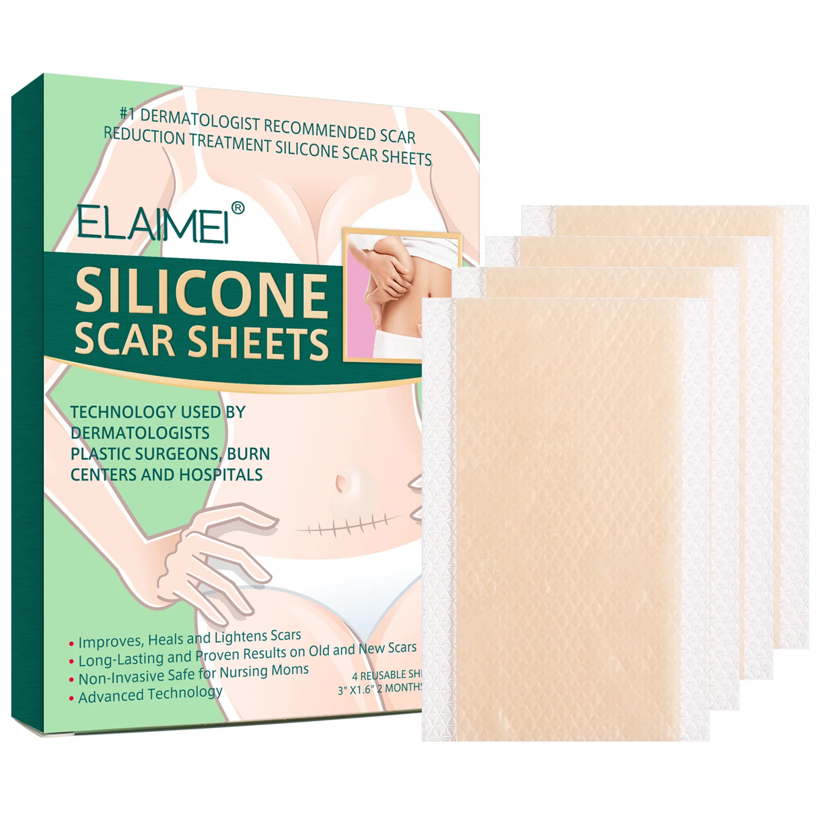 4PCS/Set Reusable Silicone Scar Sheets Removal Patch Acne Gel Scar Therapy Silicon Patch Remove Trauma Burn Sheet Skin Repair