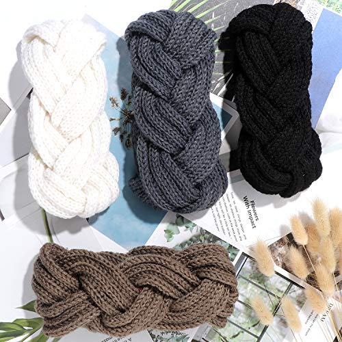 4pezzi Fascia Capelli Donna Inverno Fascia Capelli Nodo Caldo Turbante Headband Fasce in Maglia Scaldino dell'orecchio Autunno Inverno Accessori per Capelli per Donna
