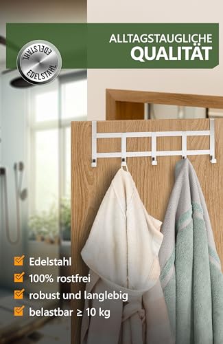 Qualità quotidiana: ideale per bagno e cucina. Il gancio per porta in acciaio inox è 100% antiruggine ed è quindi adatto come portasciugamani da appendere sulla porta.