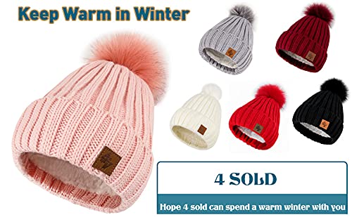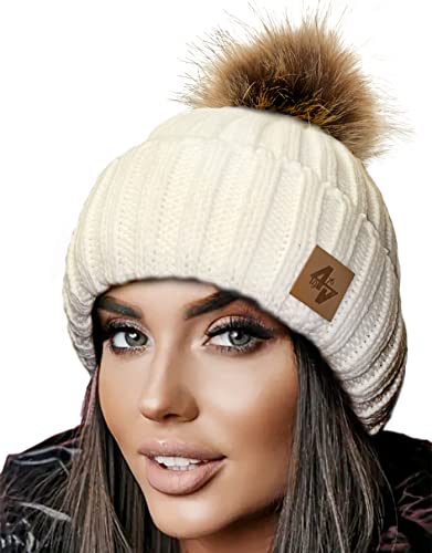 4sold Bobble Hat Plain Beanie Warm Winter Pom Berretto Lana cavata Cavetto Lavorato a Maglia Fodera in Pile Piena e Accogliente (White Brown)