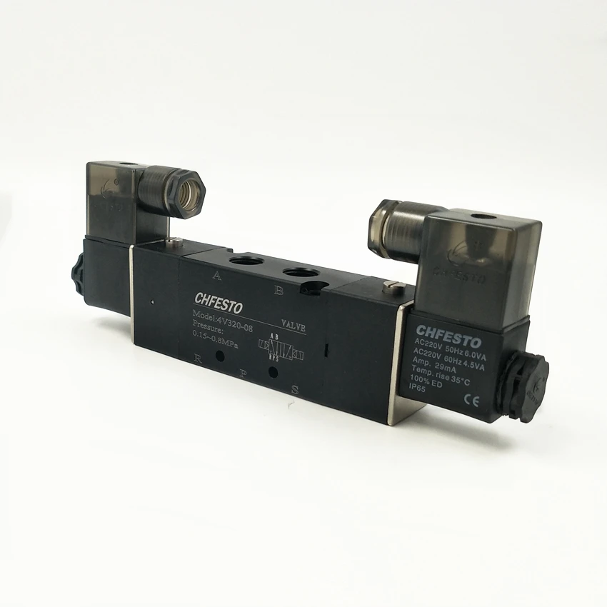 4V320-08 Solenoid Valves 2 Position 5 Port 1/4" Pneumatic Control Valve DC24V AC220V AC110V DC12V AC24V Double Solenoid
