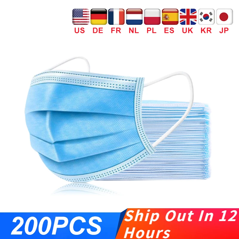 5-200pcs Medical Mask Mouth Masks Non Woven Earloops Mask Blue Protective Masks Disposable Facial Masks Meltblown Cloth Masks