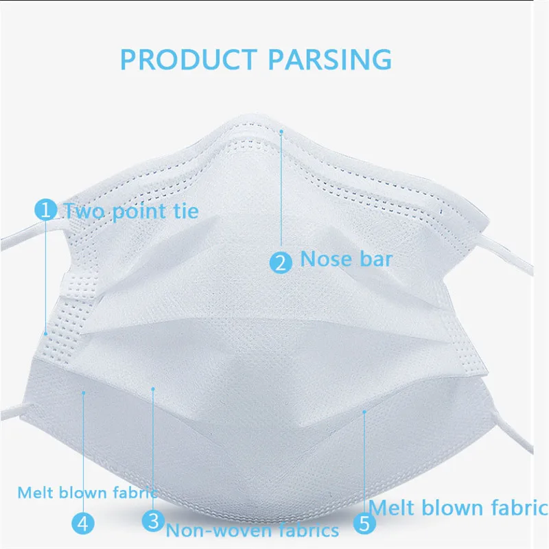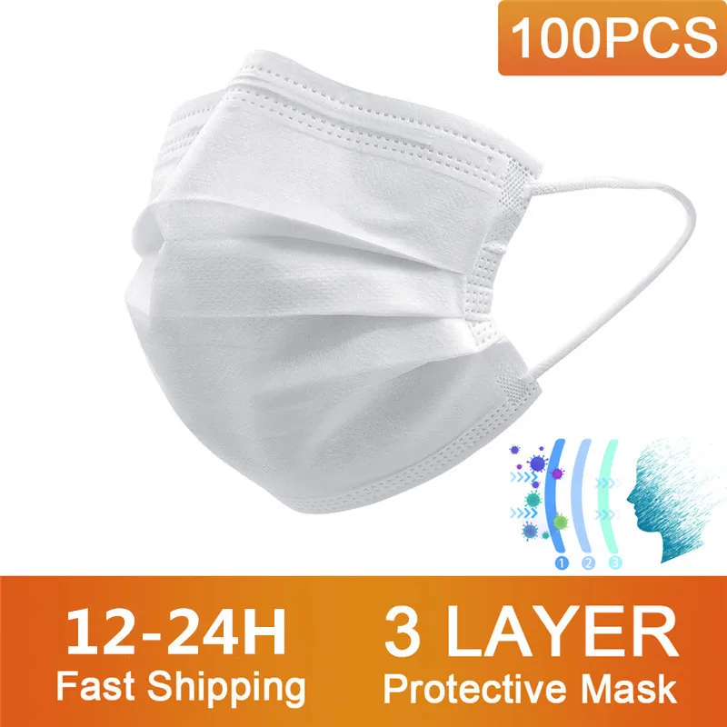 50-100Pcs Mouth Mask Medical Mask Disposable Surgical Mask Non Woven 3-laye Filter Mask Earloops Masks Breathable Adult Mask