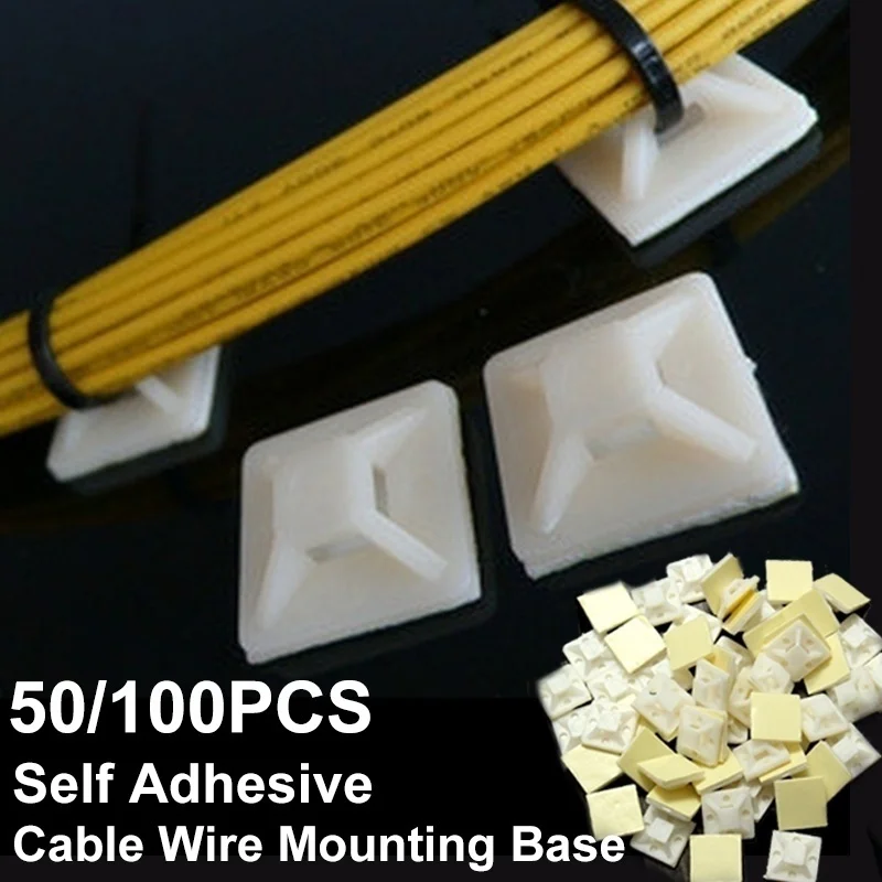 50-200PCS/Set White Cable Base Mounts 2cmx2cm Self Adhesive Cable Wire Zip Tie Mounts Bases Wall Holder Fixing Seat Clamps